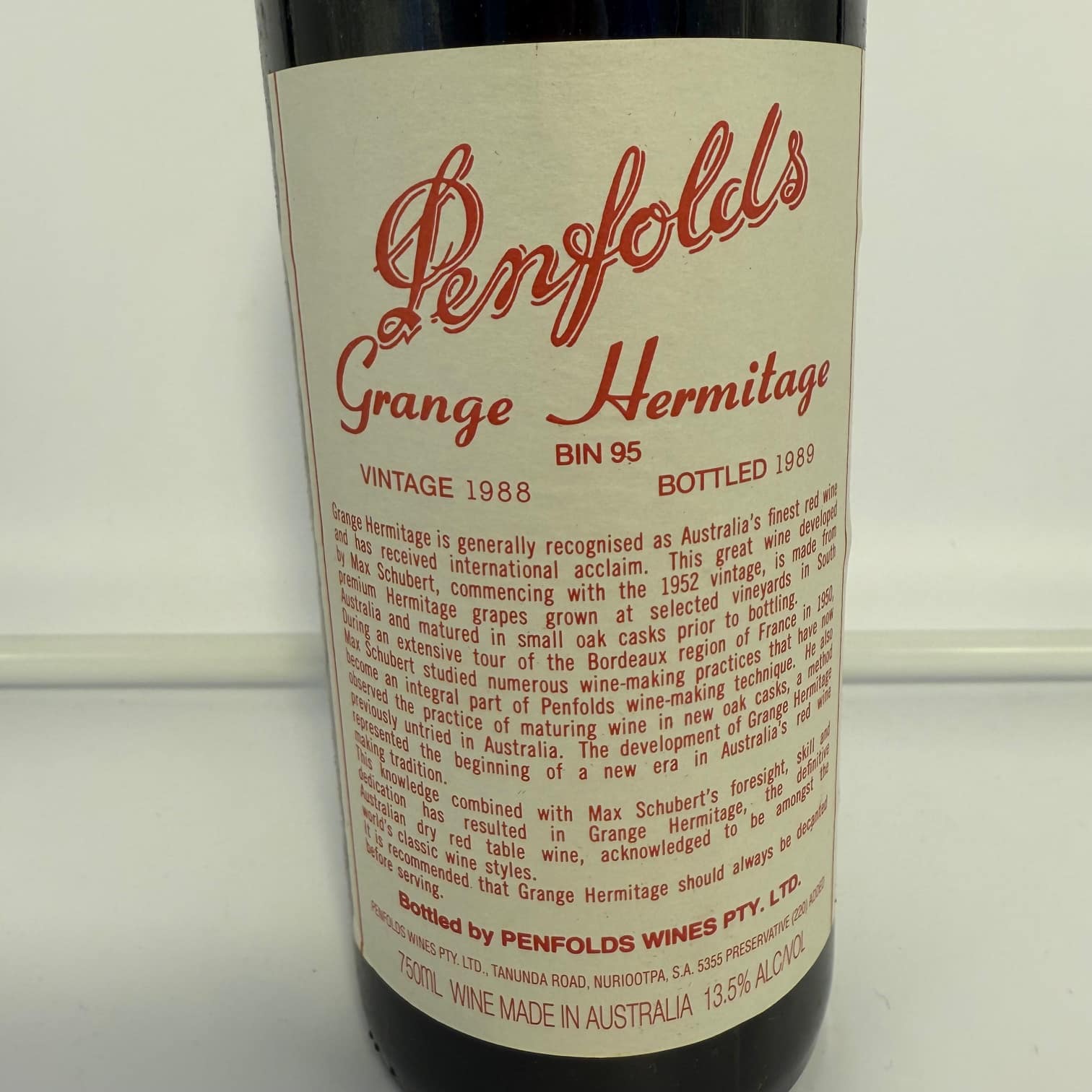 Great condition bottle of 1988 Grange.